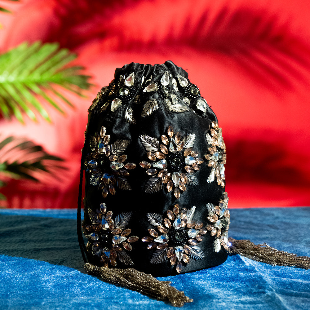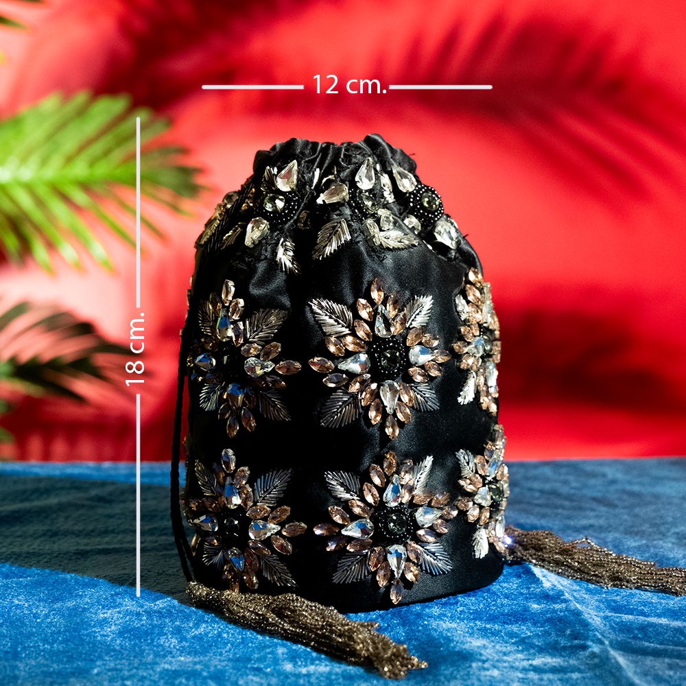 Handcrafted Geometric Glass Beaded Bridal Bag – Velvet Satin Finish, Chain Strap, Perfect for Weddings