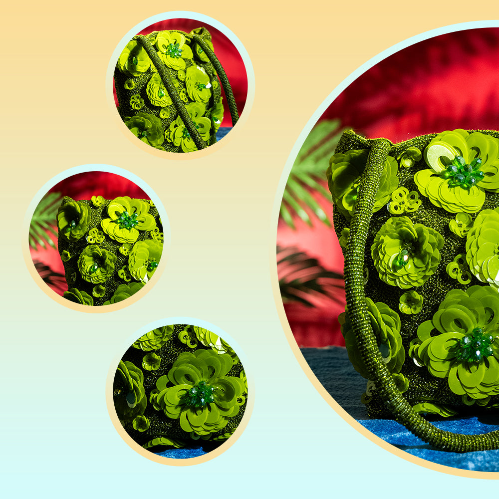 Handcrafted Glass and Acrylic handbag – Elegant Bridal Bag with Snap Closure for Weddings