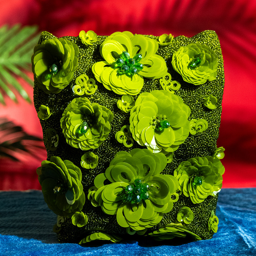 This handmade glass and acrylic clutch features a solid, polished design with polyester lining and secure snap closure. Perfect for bridal occasions, weddings, and parties, it carries essentials in style and elegance.